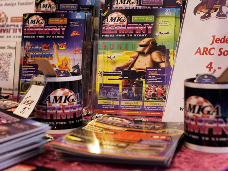 Magazine wie das Return, ein Retro-Magazin aus Deutschland, und das Future-Magazin, ein reines Amiga-Medium, waren vor Ort. Natürlich durfte auch das Amiga Germany Fan‘zine – von Fans für Fans, in dem Tino (Tinomania) selbst freier Redakteur ist – nicht fehlen. Dieses ist aus einer Bierlaune heraus entstanden. Herausgeber ist Andi Brenner und der Chefredakteur Martin Becker (Pittrock). Da man sich ständig im Netz austauscht, kam ihnen die Idee, einige Berichte auch zu veröffentlichen. Da es viele englischsprachige, aber kaum deutschsprachige Magazine gibt, ist das Amiga Germany Fan‘zine entstanden. Es bestand relativ schnell eine große Nachfrage. Nicht zuletzt deshalb, da beispielsweise Hardwareprobleme für viele Leute im Deutschen besser nachzuvollziehen sind. Angefangen hat es damit, dass Tino Martin unterstützt und ihm Informationen zugespielt hat. Seit der 7. Ausgabe ist er festes Redaktionsmitglied und neben dem Schreiben auch verantwortlich für die Öffentlichkeitsarbeit.
