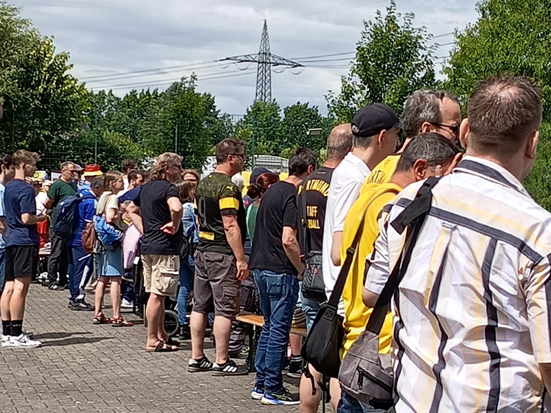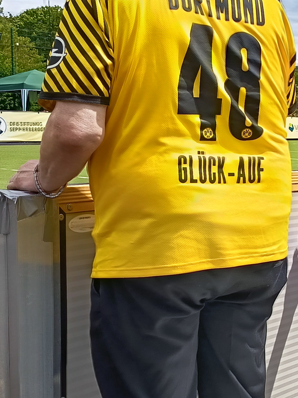 Als ich vor kurzem im Inter­net ent­deck­te, dass die Mannschaft des BVB gegen den FC St. Pauli am 05.07.2025 im Blind­en­fußball in Dort­mund-Kirchderne spielt, war mir sofort klar, dass der REVIERHUND. vor Ort ist, um dabei zuzuschauen.